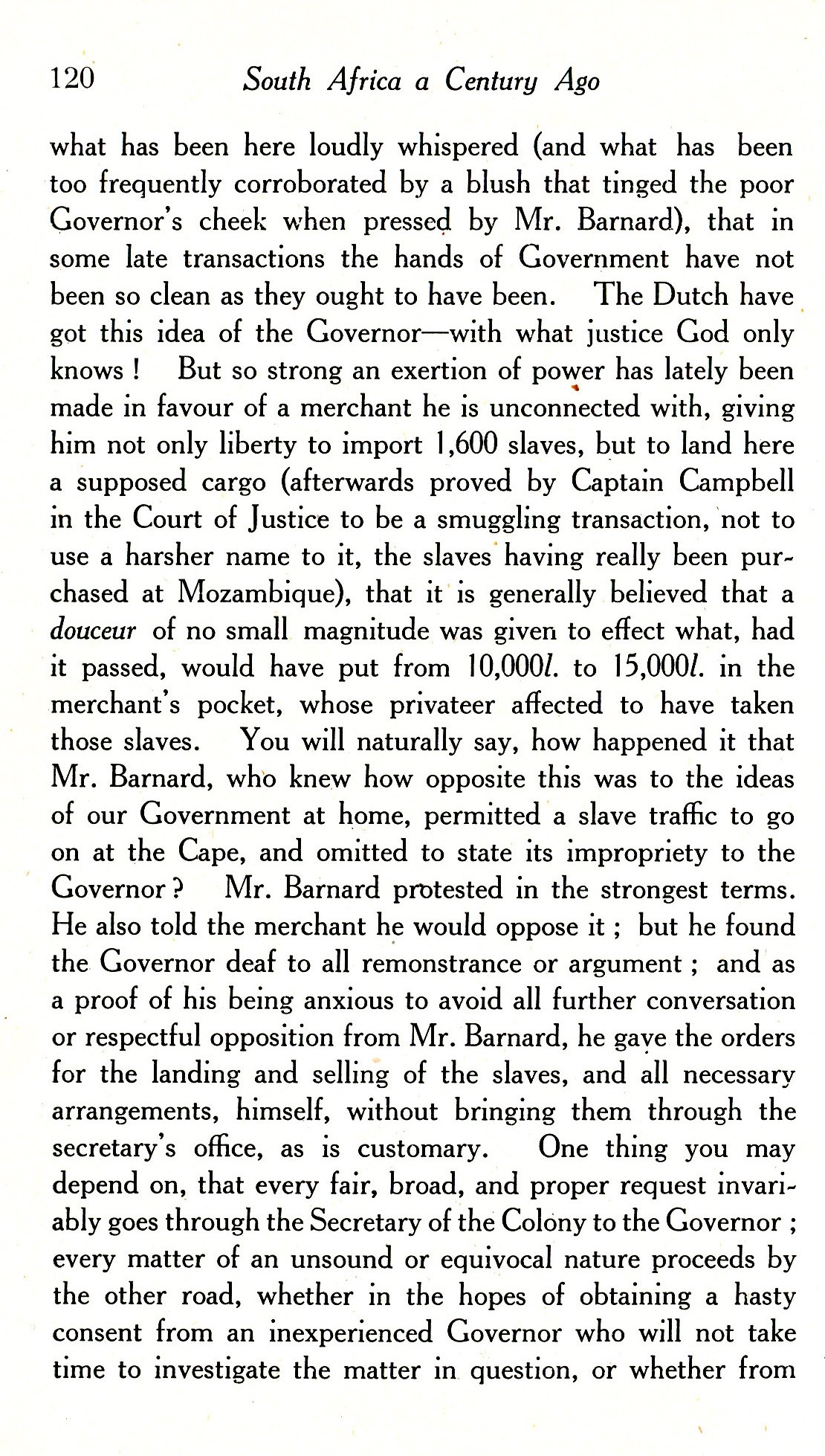 Britannique, mariée au gouverneur de la colonie anglaise du Cap, elle évoque la présence d'esclaves et la triste condition des Hottentots colonisés.