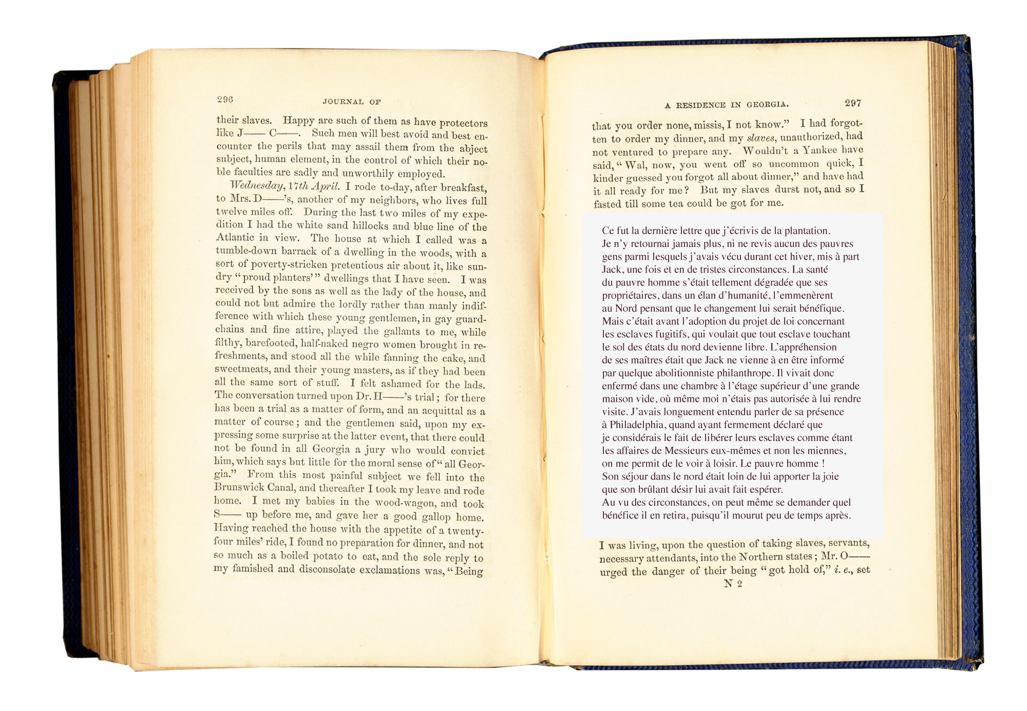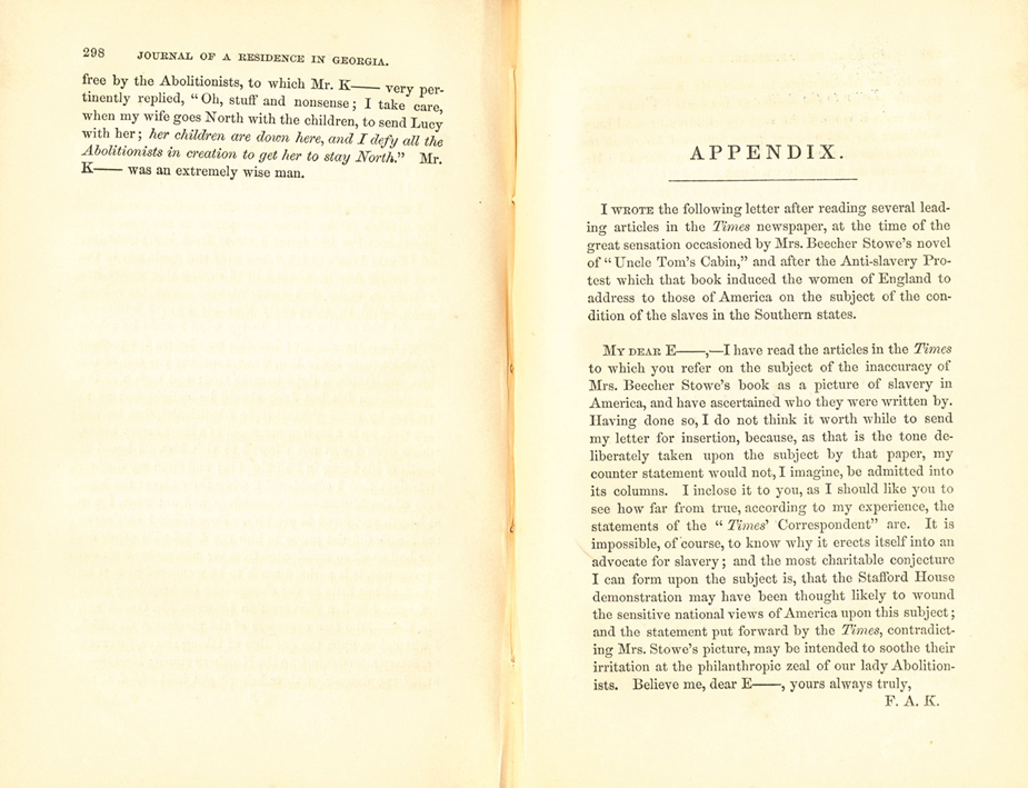 Britannique. Grande actrice shakespearienne de Covent Garden, esprit noble et courageux , elle se marie à un Américain qui se révèle tenir sa fortune de l'esclavage. Le séjour qu'elle fera en 1838 sur ses plantations de Géorgie sera l'occasion d'exprimer son angoisse et d'affirmer ses positions anti-esclavagistes.