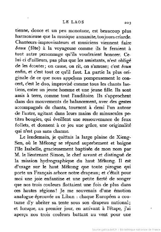 Française. Géographe conférencière, à partir de 1890, elle parcourt seule d'immenses territoires : l'Indochine où elle pense aux bénéfices que la colonisation pourrait en tirer, l'Inde ou l'Himalaya, vingt ans avant Alexandra David-Neel.